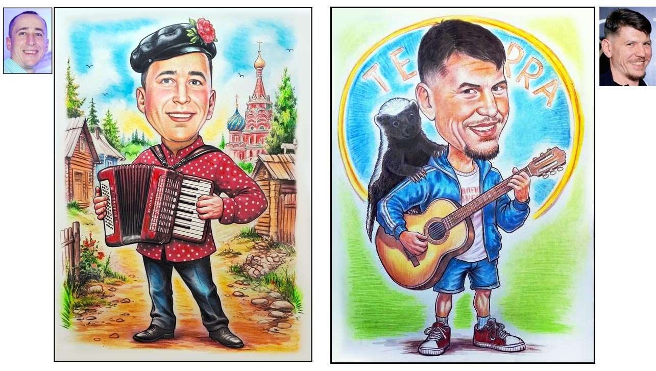 3) Работа завершена! С удовольствием высылаю вам фото готового шаржа, с нетерпением жду вашего одобрения и с радостью доставлю вам ОРИГИНАЛЬНЫЕ ШАРЖИ!