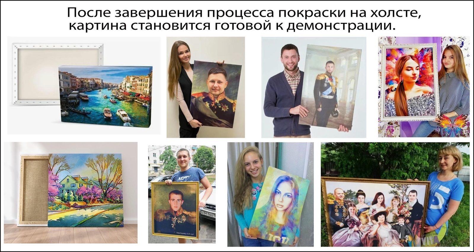 масляных красок. Для большей выразительности и насыщенности цвета используем художественный лак. Чтобы вы могли увидеть готовый портрет, мы отправим вам его фотографию для оценки.
